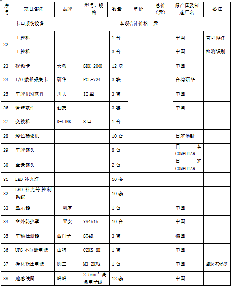g)同首期卡口相比,同规格(指的是车道数)的增加的主要设备有:彩色摄象机、LED补光灯、LED补光灯控制系统;