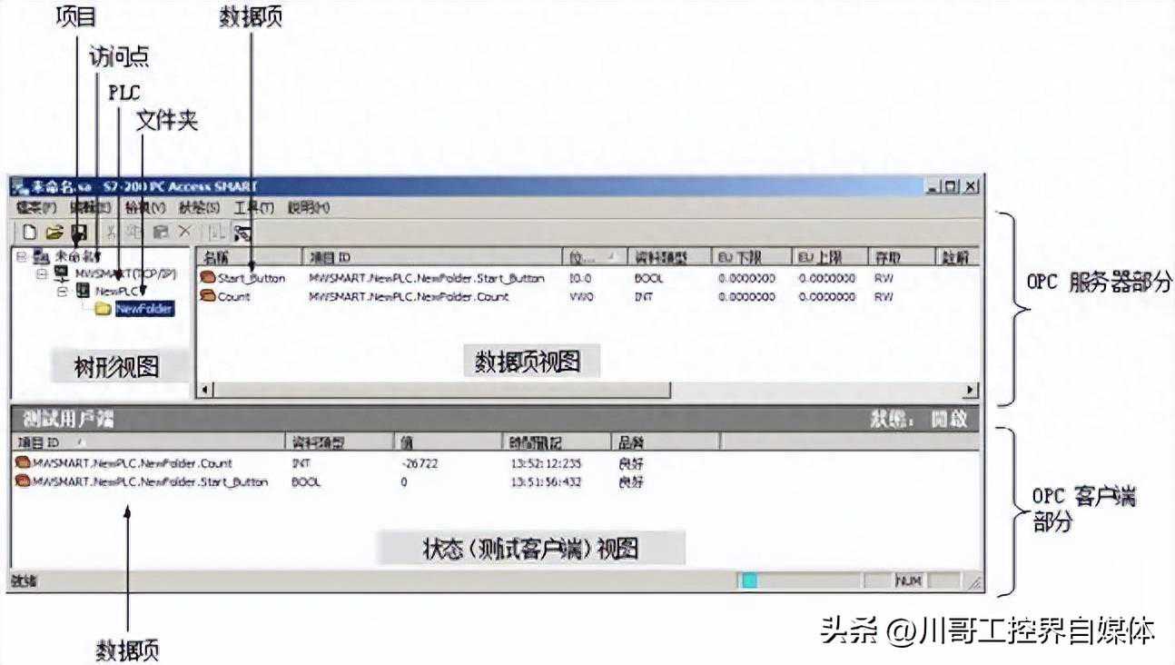 S7-200PCAccessSMART在本文中都简称为PCAccessSMART。PCAccessSMART可以支持第三方上位机软件与S7-200SMARTPLC建立OPC通信。