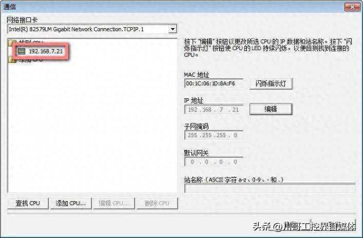 第二步:在弹出的窗口中“查找CPU”,在网络中选择要做OPC通信的PLC,紧接着设置本地和远程的TSAP号。