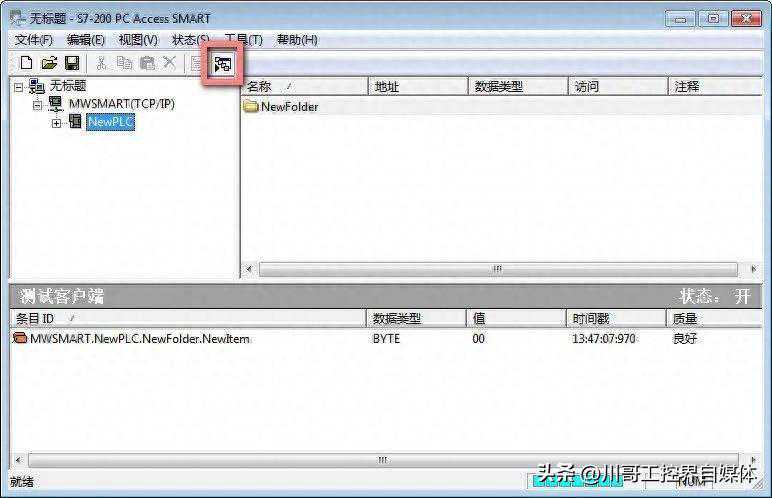 注意:客户端测试只能测试从PLC读取变量数值,不能测试向PLC写变量值