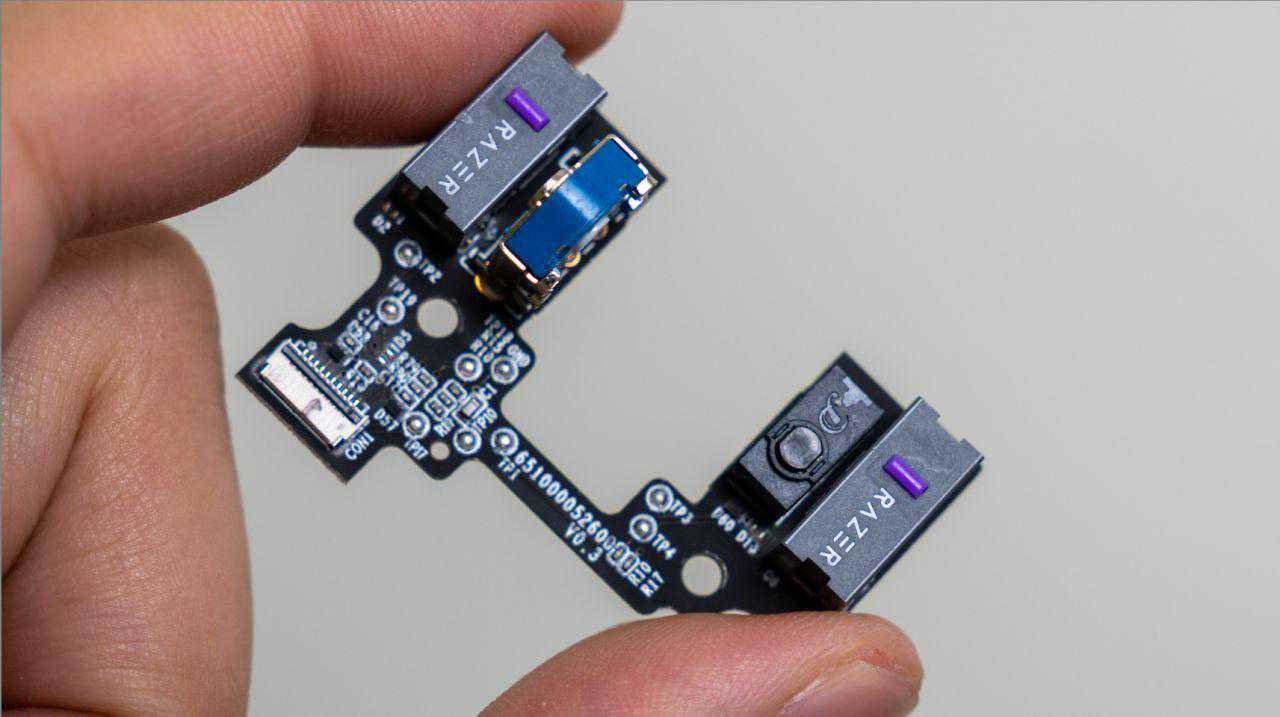 主键依旧和之前的专业版一样是雷蛇第三代光微动,9000W次寿命,滚轮编码器来自TTC,侧键和中键则均为长风。整体微动手感和之前的毒蝰V2Pro保持一致。