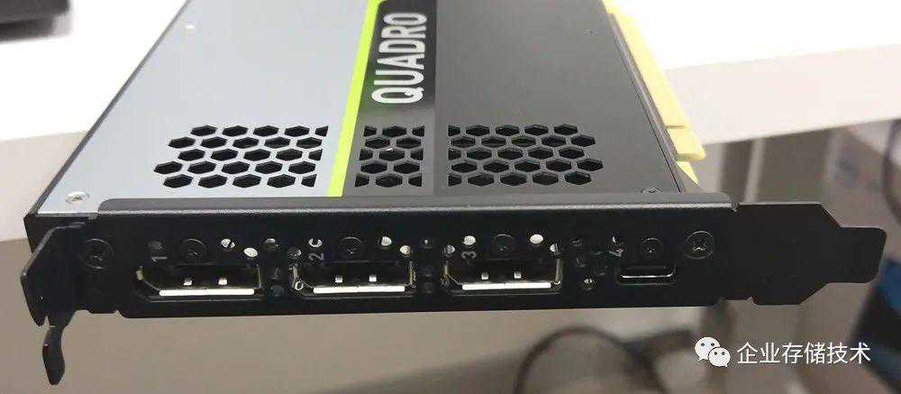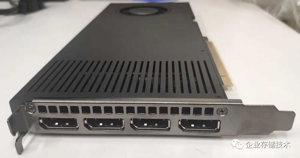 上图为QuadroRTX4000,在PCIeI/O挡片上的小圆孔看着确实没有新一代A4000的散热排气效果好。