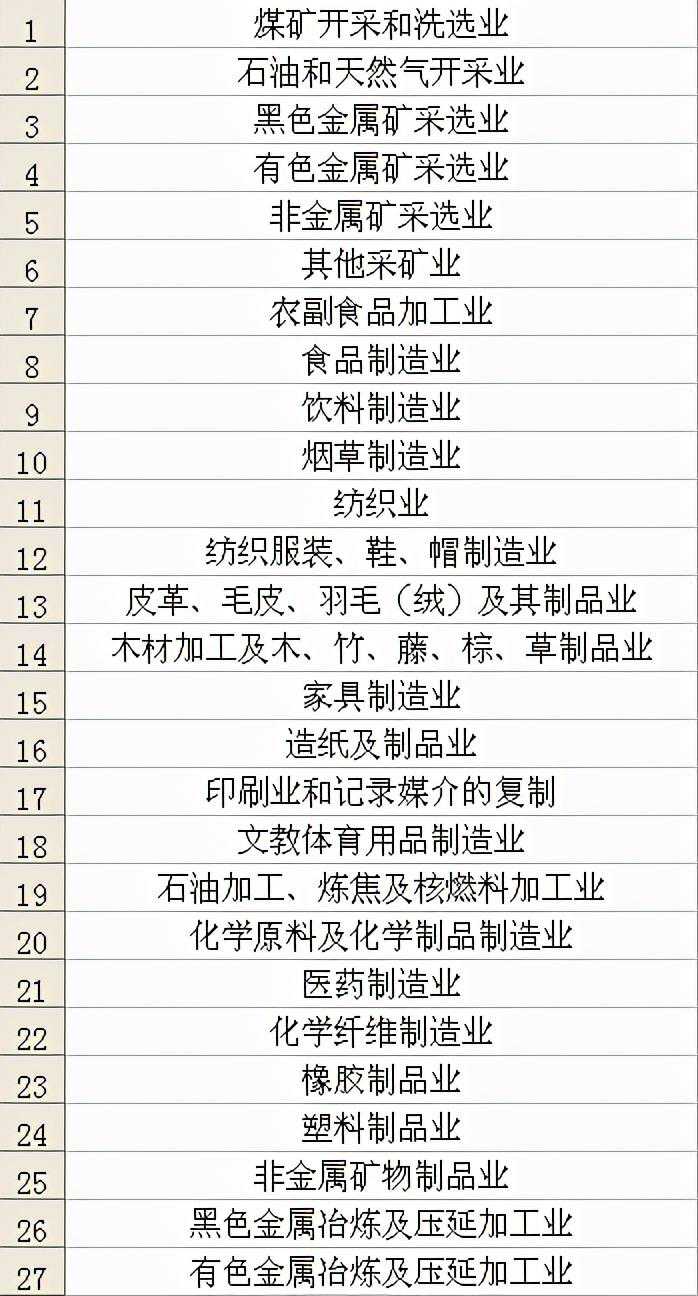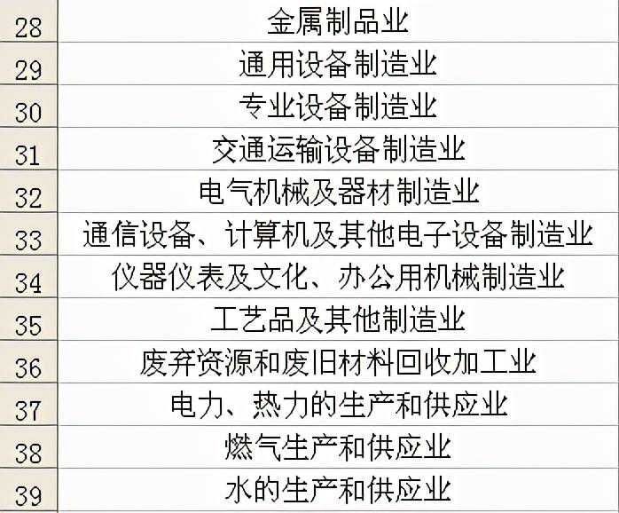 一个更新,最新行业分类第四修订版,工业大类变为39-5=34大类,分类如下: