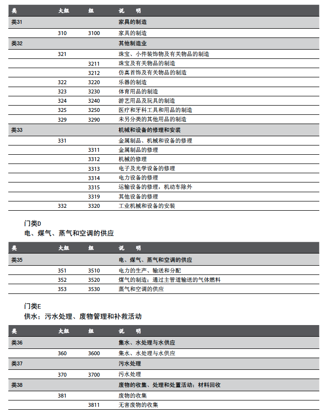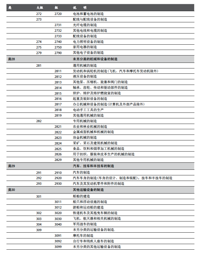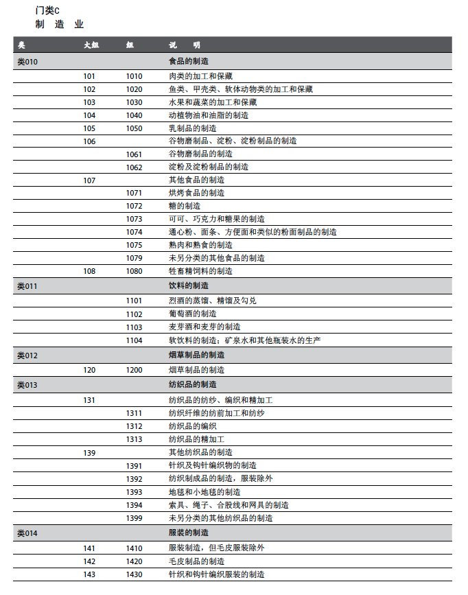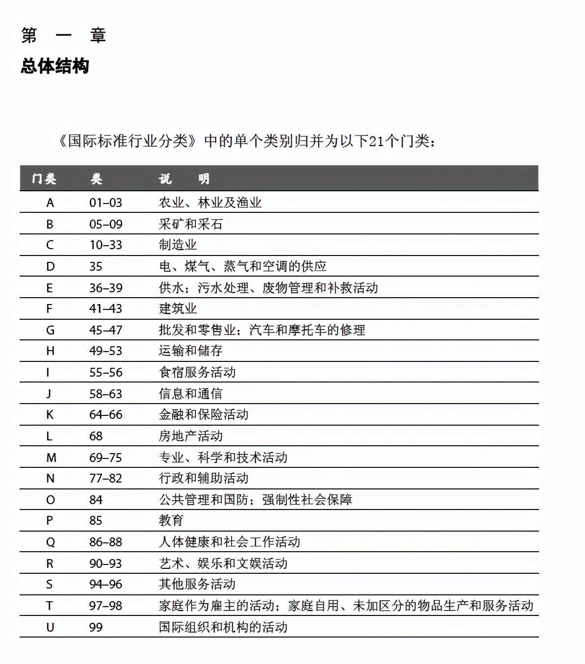 参考文件:《所有经济活动的国际标准行业分类修订本第4版》。
