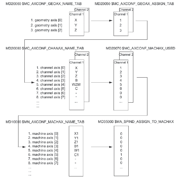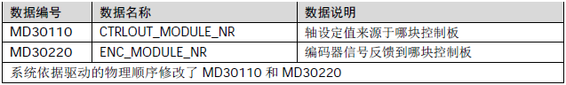 分配驱动给轴这一步,自动修改了若干数据,其中与驱动分配相关的有MD30110和MD30220。