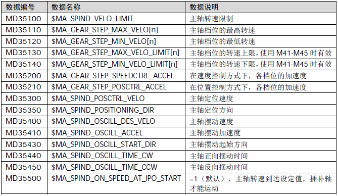 若MD35010$MA_GEAR_STEP_CHANGE_ENABLE=1,设置与档位相应的数据,如主轴有三档,那么就要设置方扩弧中序号0到3的数据。