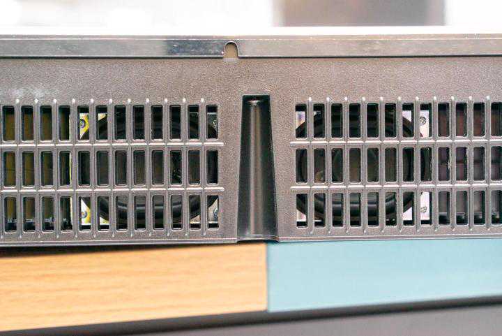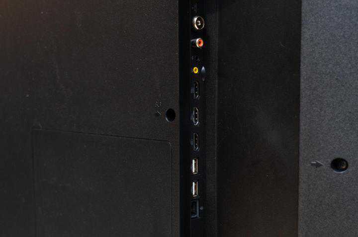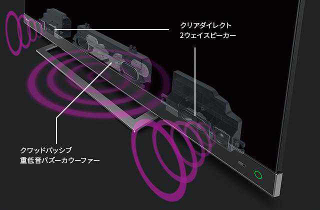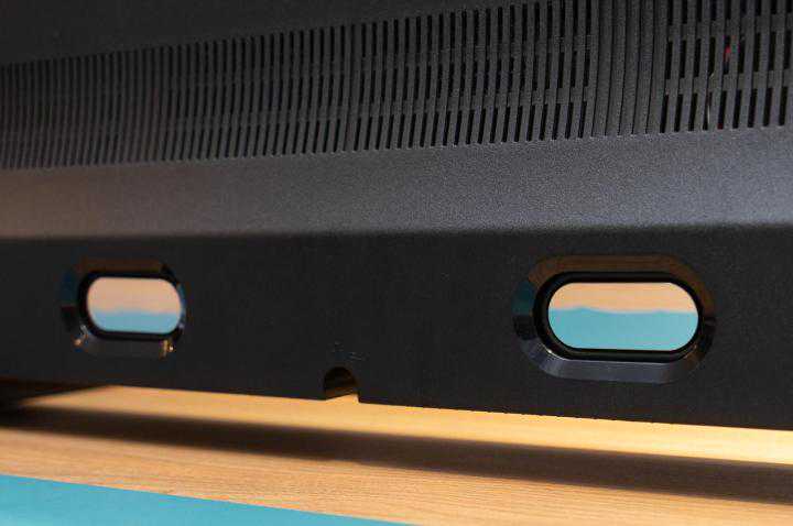除此以外,在机器的背面还有下方还带有两个被动发声单元来提升电视机的低音效果。