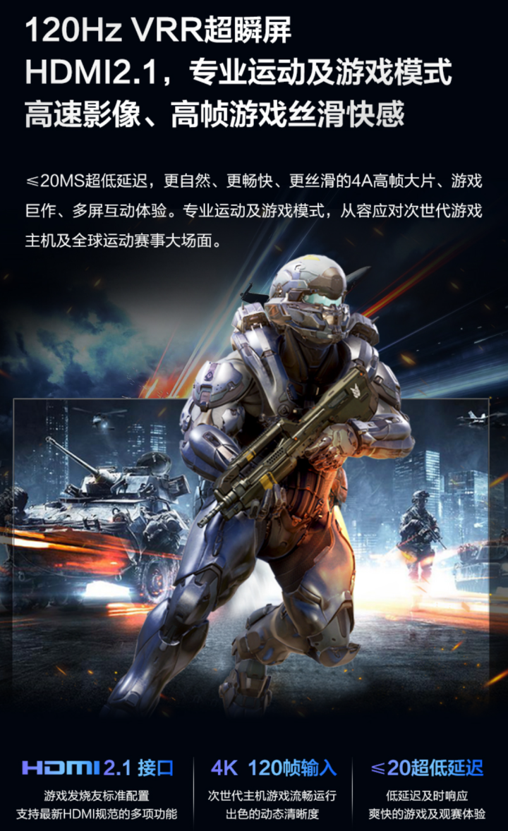 120HzVRR超瞬屏除了分区背光+广色域面板外,这台东芝Z740F还具有120Hz高刷+VRR可变刷新率。虽然目前120fps的影视资源不多。但是通过接口连接游戏主机以后,就能发挥出这块超瞬屏的最大性能。
