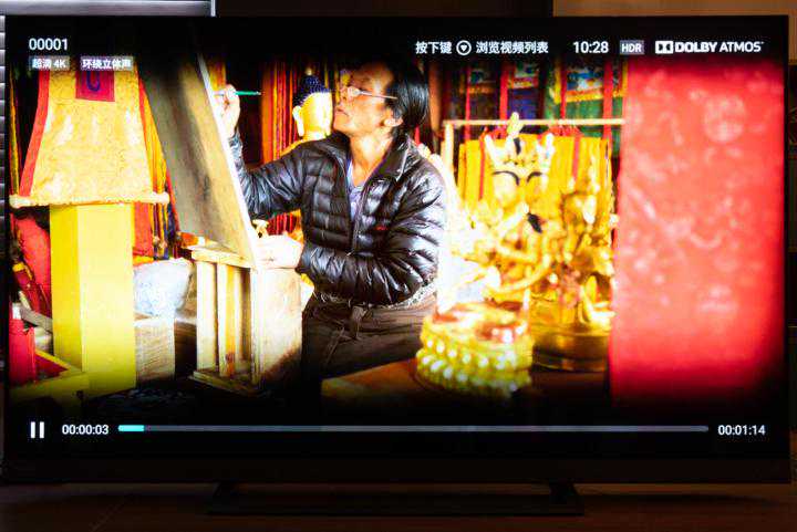 在播放杜比视界资源时,HDRDOLBYATOMS徽标都能点亮进行解码,虽然环绕效果还是有点欠缺,但是作为电视自带音响,Z740F的表现已经是非常不错,甚至超过了不少低端的SoundBar的表现。