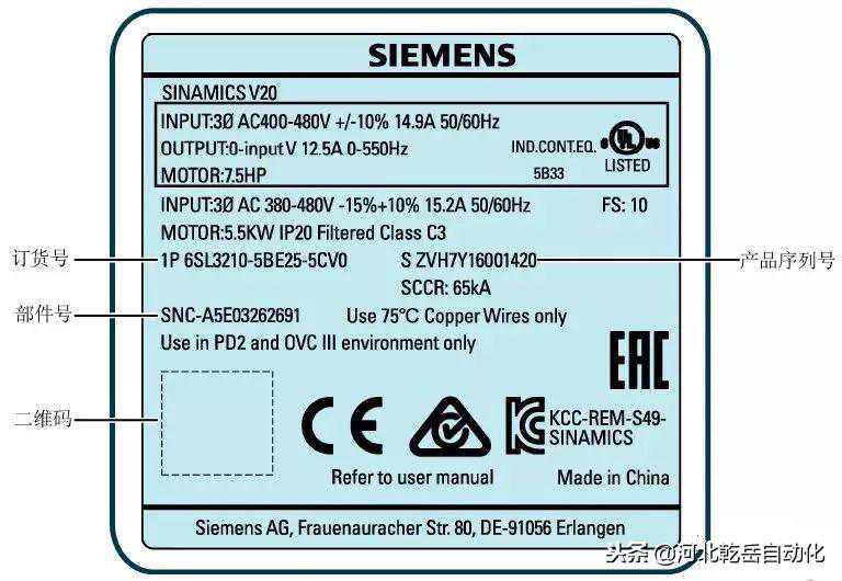 其订货号为:6SL3210-5BE25-5CV0。