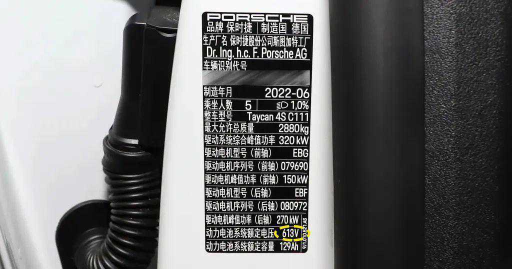 在电气系统中,系统工作电压一般是额定电压的1.1-1.2倍,也就是说系统电压可以在一定范围内变动。比如最早宣传采用800V的保时捷Taycan,它的Turbo版额定电压为723V,最大工作电压为854V;而更便宜的Taycan4S额定电压只有613V,按照1.2倍的最大工作电压计算,Taycan4S的最高电压预计在735V左右。