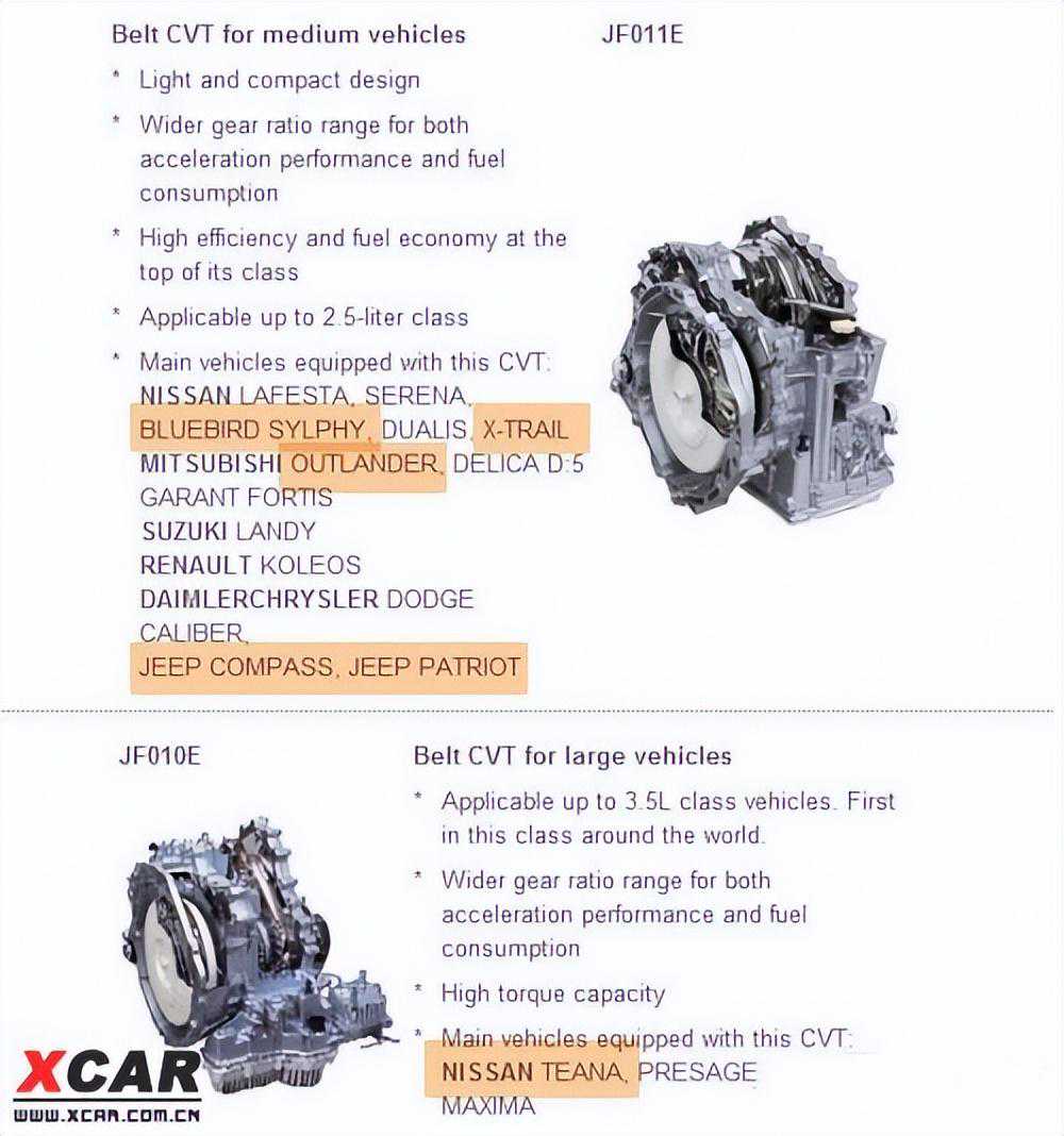 逍客的JF011E型号CVT变速箱同时还应用于其它品牌车型上