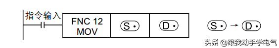 c、MOV指令:将软元件的内容传动(复制)到其他软元件中的指令。