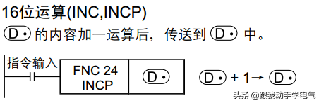a、INC:指定软元件数据中加1指令。为16位运算。