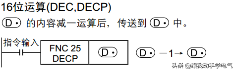 b、DEC:指定软元件数据中减1指令。为16位运算。