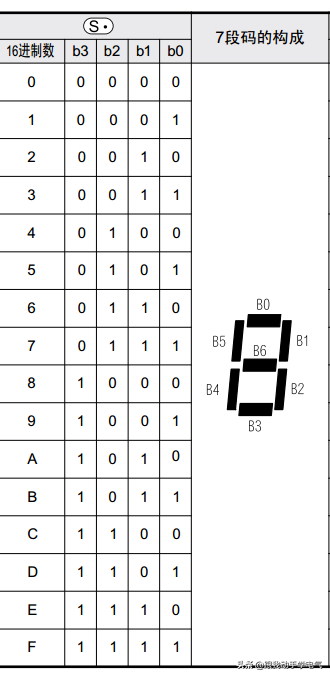 c、SEGD七段码译码:数据译码后,点亮7段数码管(1位数)指令。译码表如下图所示: