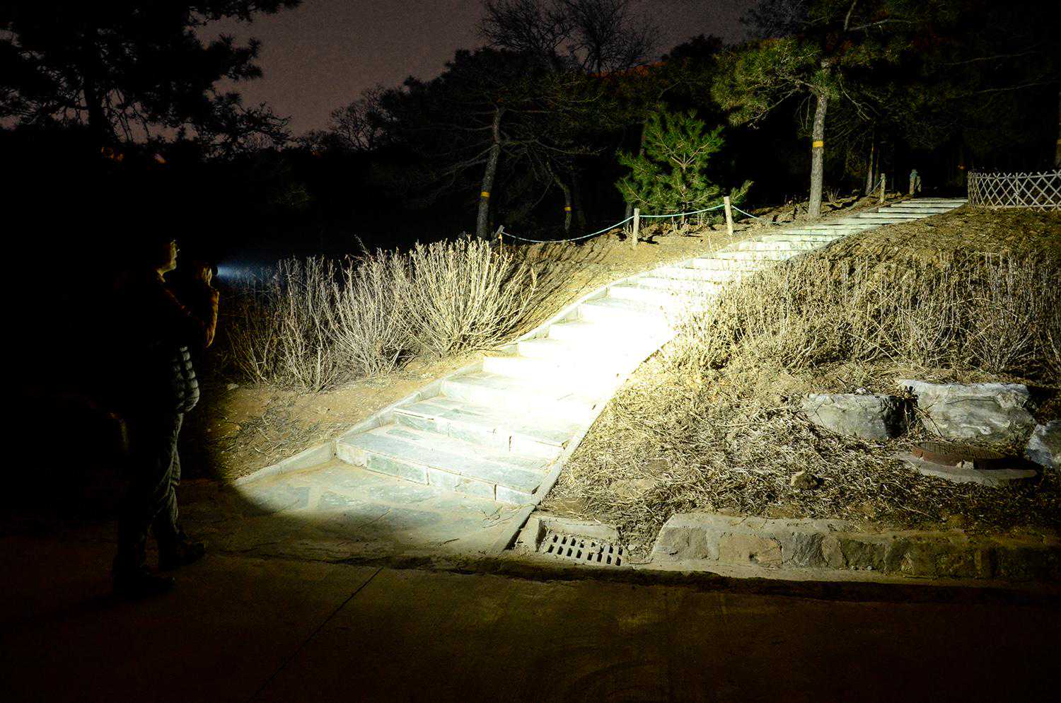 从远泛兼顾的使用角度来看,TA31一开,正前方就会被清晰照亮,中心亮度更高、看得更远,聚光和泛光没有明显的明暗分界,视野内亮度连贯,从左到右全被光线覆盖,便于余光观察。