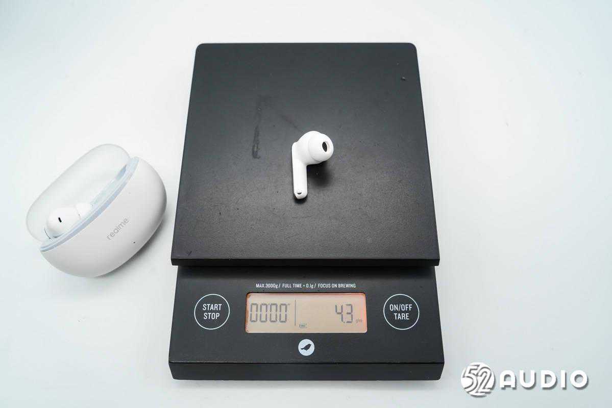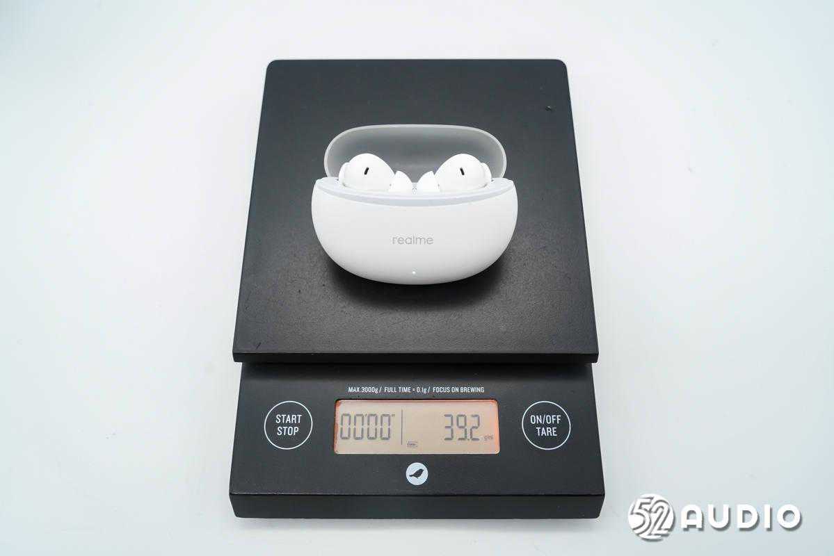 经我爱音频网实测,realmeAir3Neo真无线耳机整体重量约为39.2g,极致轻盈,小巧便携。