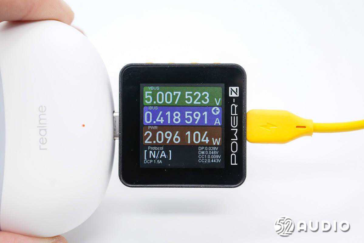 我爱音频网采用CHARGERLABPOWER-ZKM002C对realmeAir3Neo真无线耳机进行有线充电测试,输入功率约为2.10W。