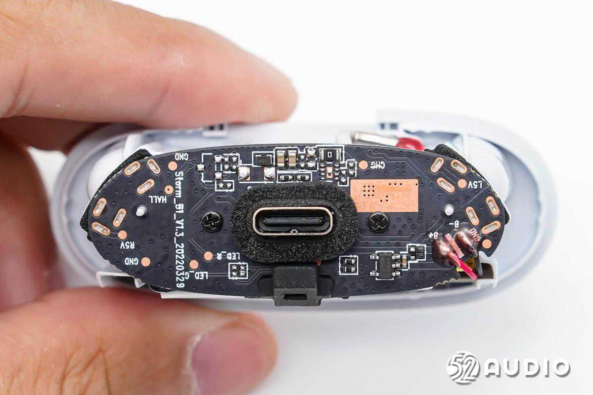 充电盒外壳内侧结构一览,充电接口开孔设计筋骨强化。