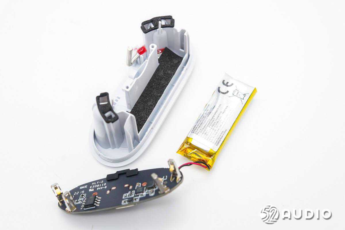 座舱底部结构一览,电池和为耳机充电的开孔位置均设置有海绵垫,起到密封和防护作用。
