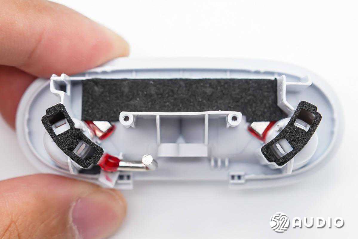 座舱内部结构一览,为耳机充电的金属弹片位于耳机柄底部。