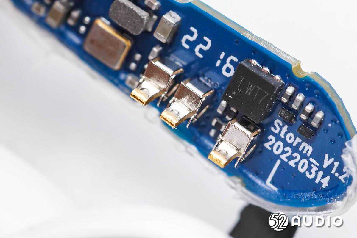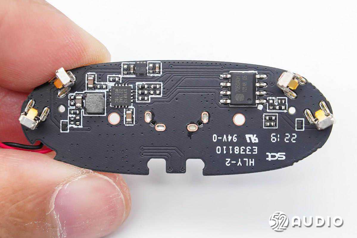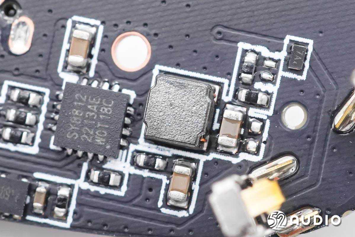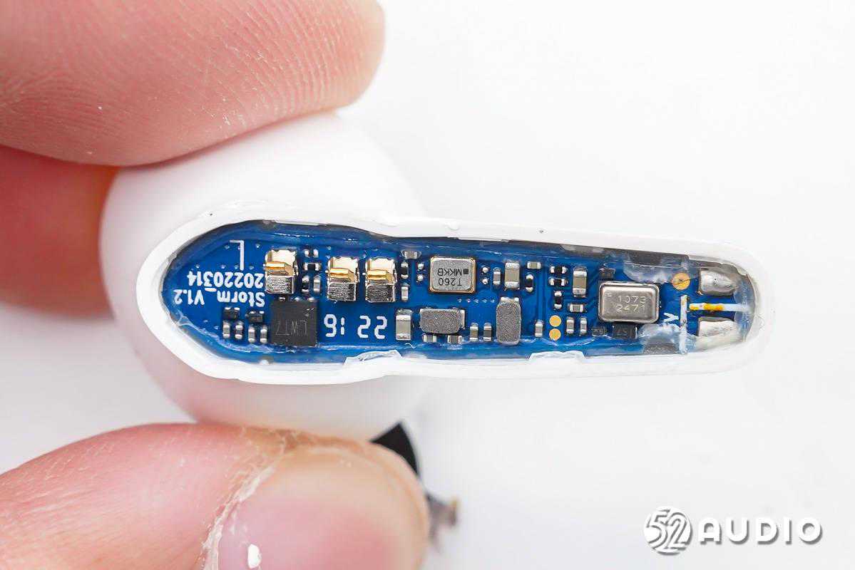 耳机内部,耳机头内采用10mm动圈单元,0.148Wh软包扣式电池,串联在同一条排线上再连接到耳机柄内主板。主板上搭载了恒玄BES2500系列蓝牙音频SoC,支持蓝牙5.2,为高性价比方案;创芯微CM1126B-GAC带船运模式二合一单节电池保护IC,实现对电池的过充电、过放电、过电流等保护;以及单颗MEMS麦克风,用于语音通话拾音。