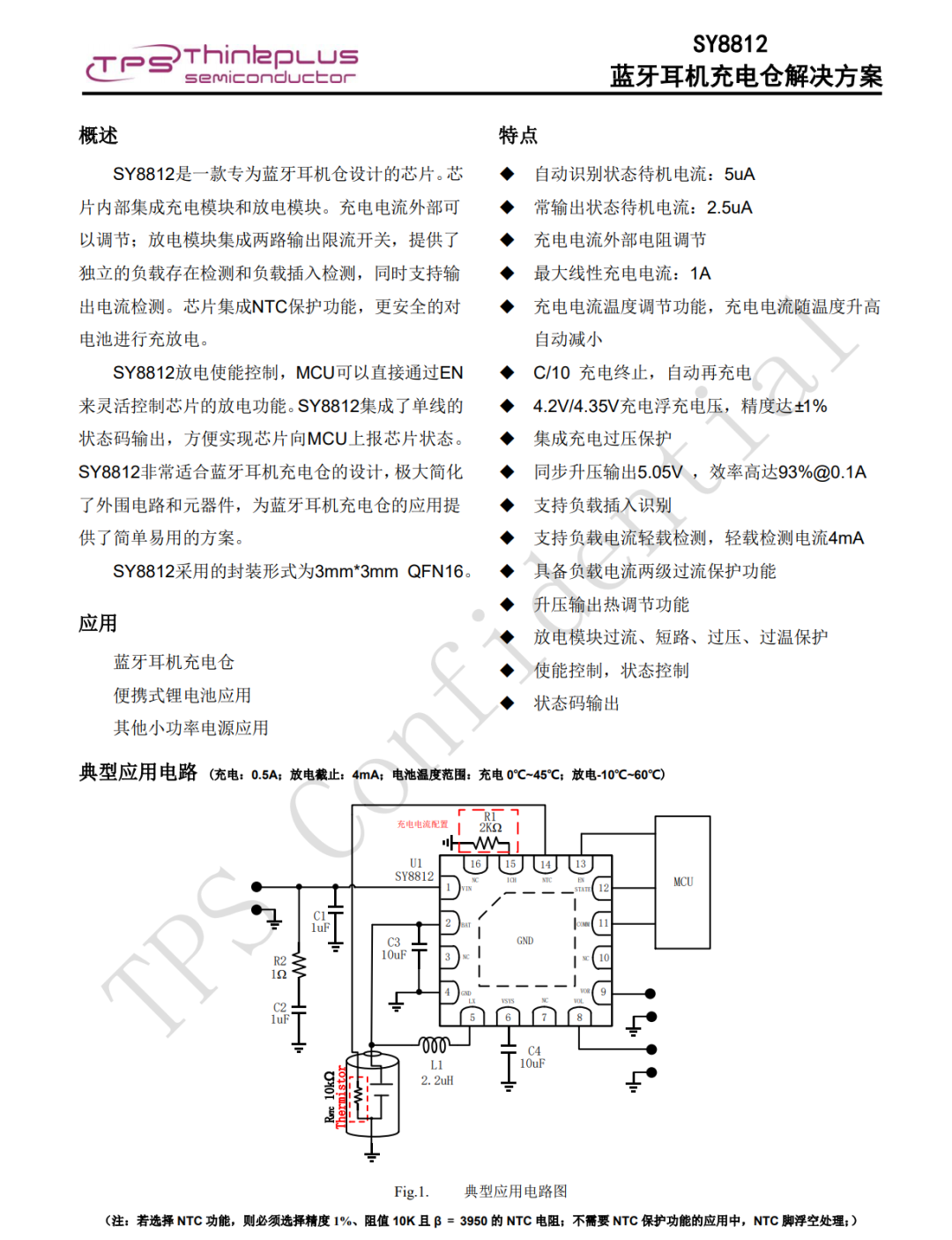 思远SY8812是一款专为蓝牙耳机充电仓设计的SoC芯片,采用3mmx3mmQFN16封装。芯片内部集成充电模块和放电模块。充电电流外部可以调节;放电模块集成两路输出限流开关,提供了独立的负载存在检测和负载插入检测,同时支持输出电流检测。芯片集成NTC保护功能,更安全的对电池进行充放电。