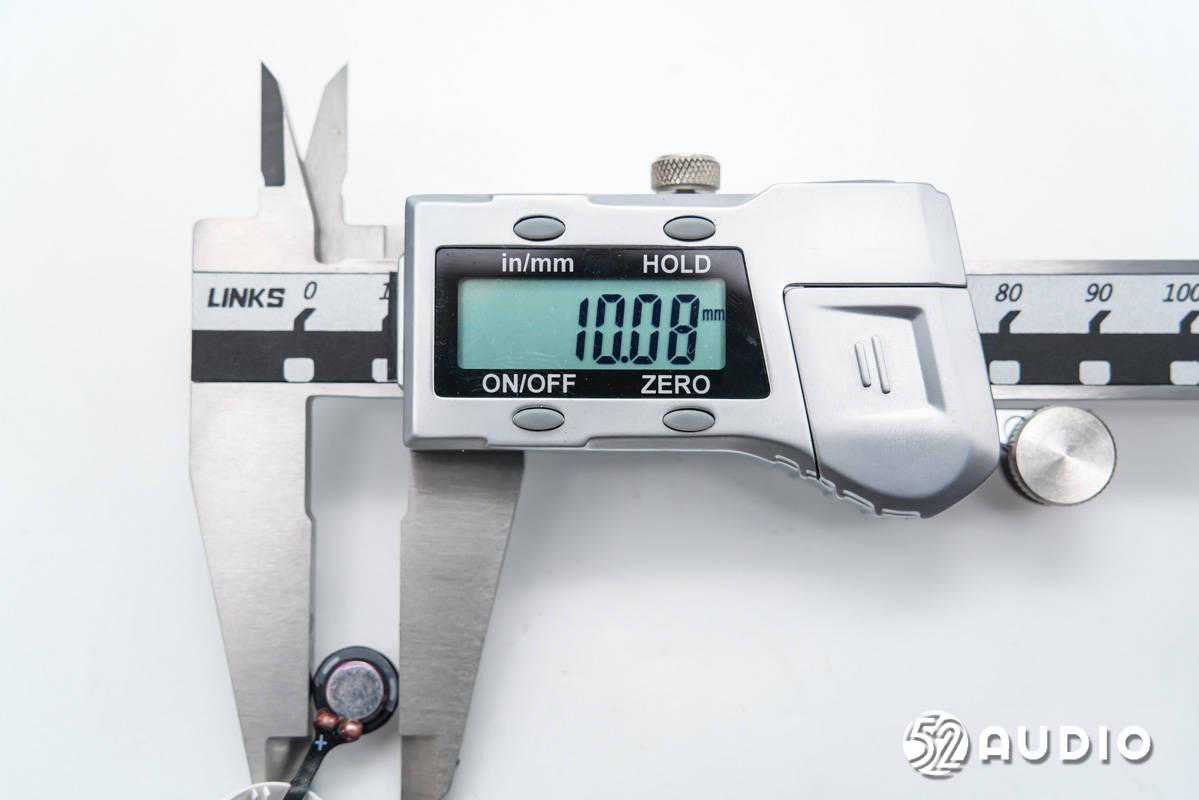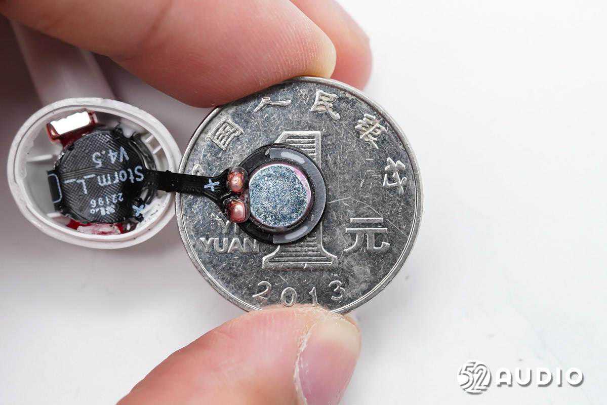 经我爱音频网实测,扬声器尺寸约为10mm,与官方宣传一致。