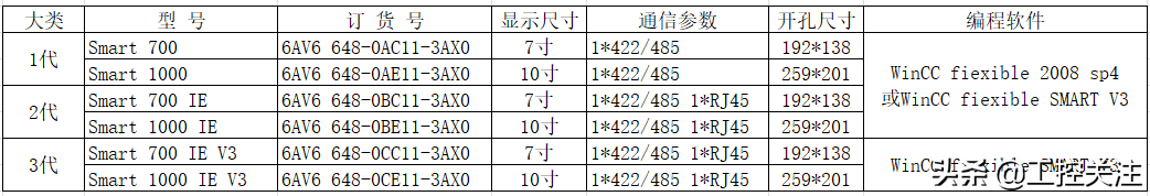 西门子SMART精彩面板经历1代V1、2代V2的发展,到如今的3代V3版本,软、硬件都有进一步的升级变迁,尤其是3代V3版本。具体如下:各版本订货号、参数、区别在屏铭牌上我们可以找到型号及订货号:型号......