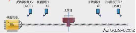 这里用了了两套限位开关,限位1接PLC,限位2接伺服驱动器,为了保护。