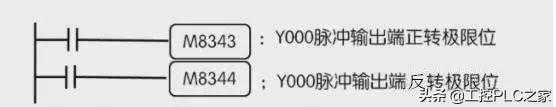 Y0M8343M8344当极限标志位为ON,电机减速停机。