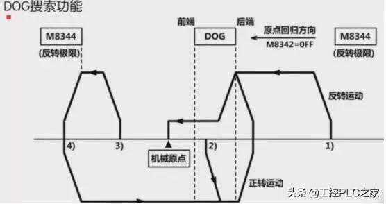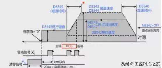 当收到Xi近点信号,触发降速到爬行速度,进入DOG区,再接触到零点信号Xj后停止运行。