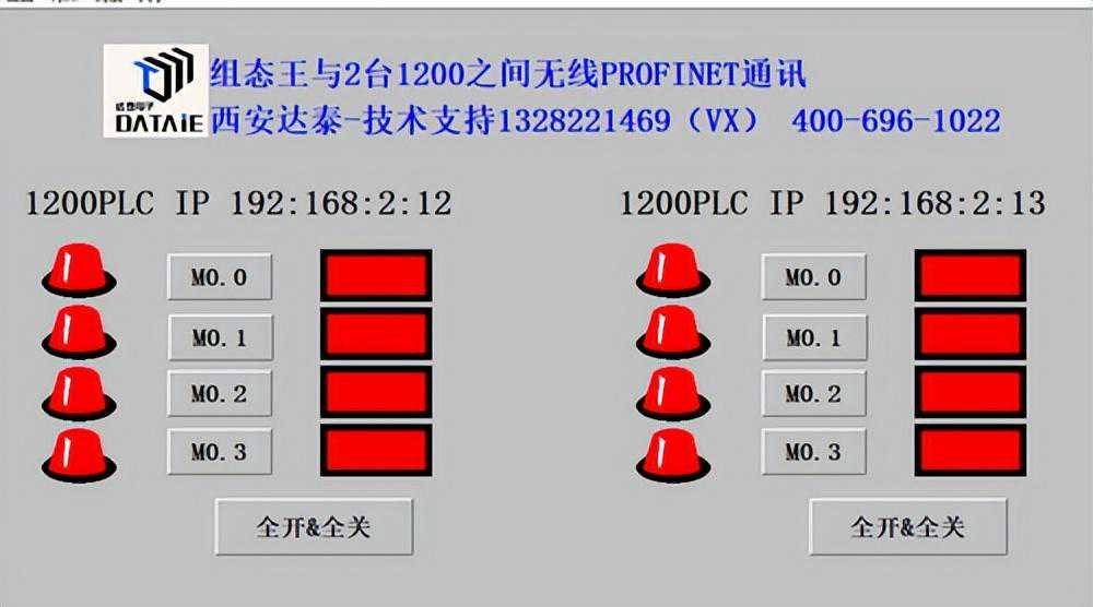 本方案以组态王和2台西门子S7-1200为例,介绍组态王与多台PLC的无线Profinet协议通信实现过程。在本方案中采用了西门子PLC无线通讯终端——DTD418MB,作为实现无线通讯的硬件设备。