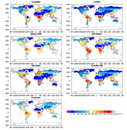 中科院大气物理研究所丹利研究员团队对全球1901~2005间长达一百年NPP时空变化进行了研究,其研究结果对生态系统的质量状况和生产能力,生态系统的碳源/汇功能和评价陆地生态系统可持续发展的判定提供了借鉴。其结果发表在气候与环境研究期刊。