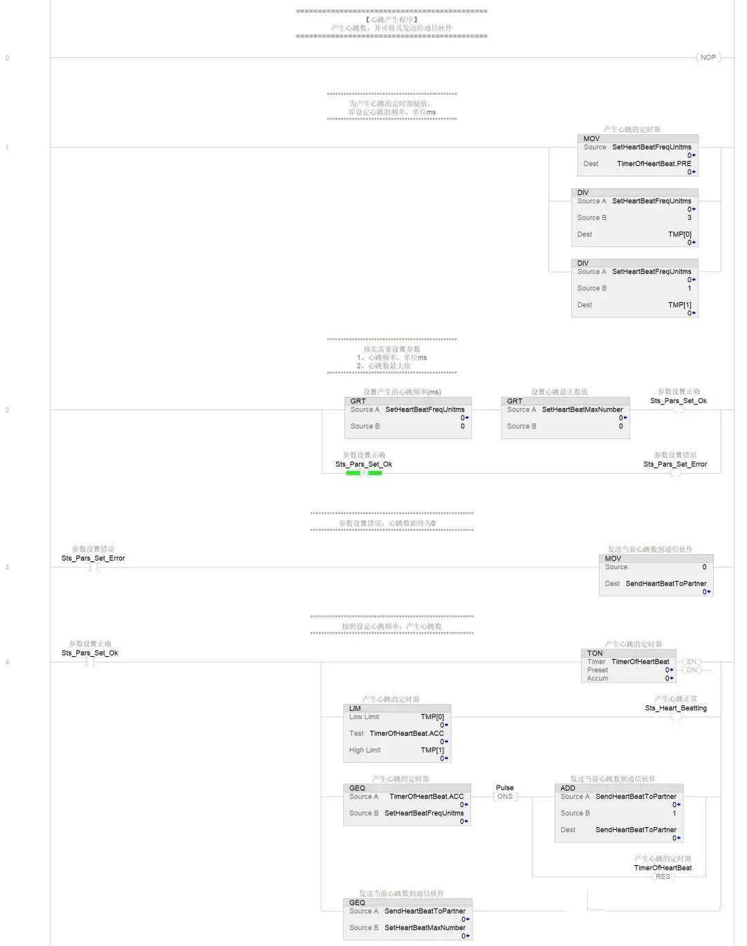 结语:综上所述,本文通过图文、理论、案例等方式方法比较详细的讲解了网络通信心跳机制,以及LOGIX5000控制器如何编写代码来实现,由于该属性具有通用性,即不仅仅限于ABPLC之间的通信,还适用于ABPLC与第三方设备通信,故使用了AOI封装的方式,便于快速移植和部署,感兴趣的朋友可以试试,也可以开发适合自己项目的代码。