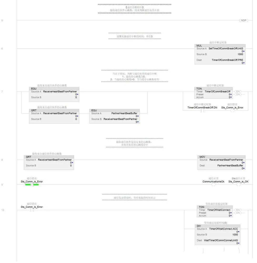 6.AOI封装块里第2部分,接收通信伙伴的心跳,并以此判断通信状态的程序代码.