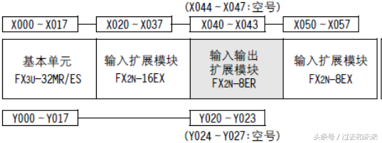 从基本单元开始,X、Y各自独立按8进制以8点为单位连续分配,如果基本单元或扩展单元(模块)的X、Y不为8的倍数,则下一个单元(模块)从下一个8的倍数开始分配(即可能存在空号);扩展单元(模块)的X、Y编号,各自独立顺接基本单元的编号连续分配