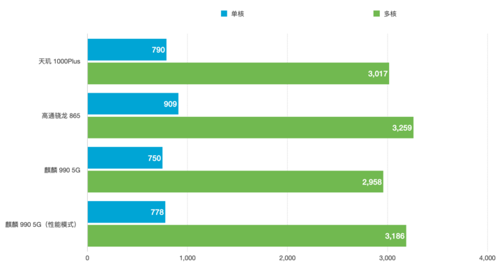 ▲注:天玑1000Plus为正常模式下运行;麒麟9905G为性能模式下进行