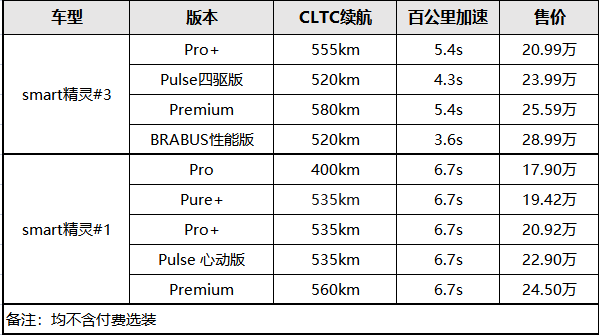 首先是价格区间的重合,smart精灵3售价区间为20.9万-28.9万元。
