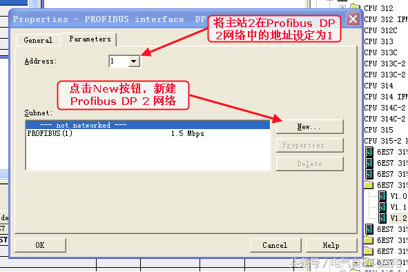 2、按照上方网络拓扑图配置ProfibusDP1网络