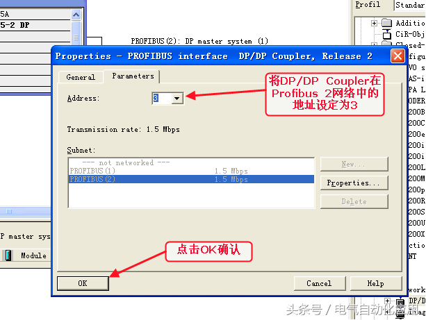 这样Profibus1网络就设置完成了,下来我们配置Profibus2网络和Profibus1网络相连接的DP/DPCoupler在Profibus2网络中的映射地址。