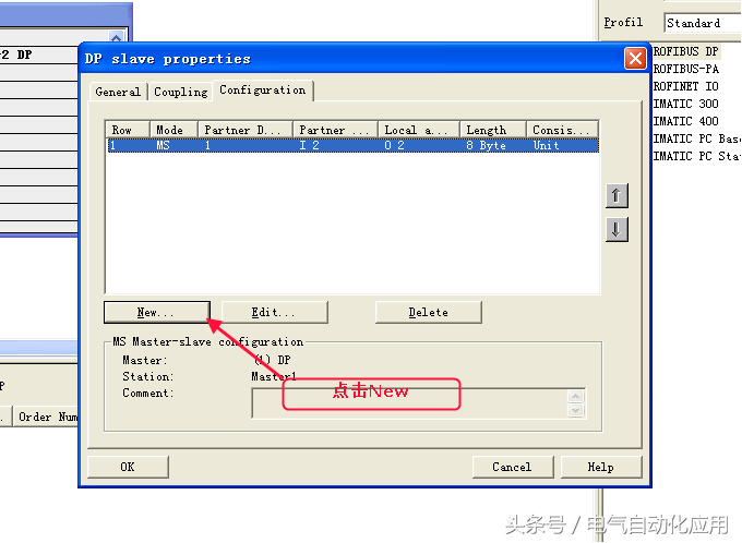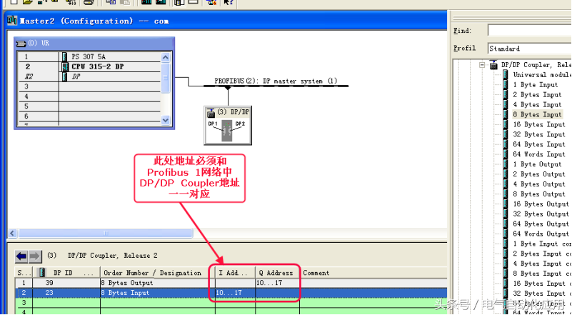 下面我们来配置DP/DPCoupler,DP/DPCoupler是连接两个ProfibusDP网络的接口,是两个ProfibusDP网络通讯的桥梁,配置DP/DPCoupler的过程其实也是两个网络数据交换区的相互映射的过程,在一个网络先配置输入后配置输出,则在另一个网络先配置输出,后配置输入,反之亦然,并且地址必须一一对应。