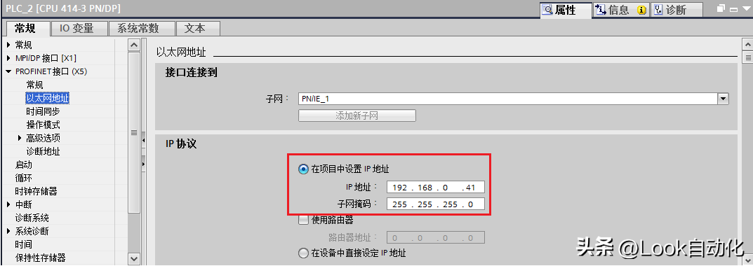 1.1使用TIAPortal生成项目使用TIAPortal创建一个新项目,组态S7-1500站点,并设置IP地址如图1所示。