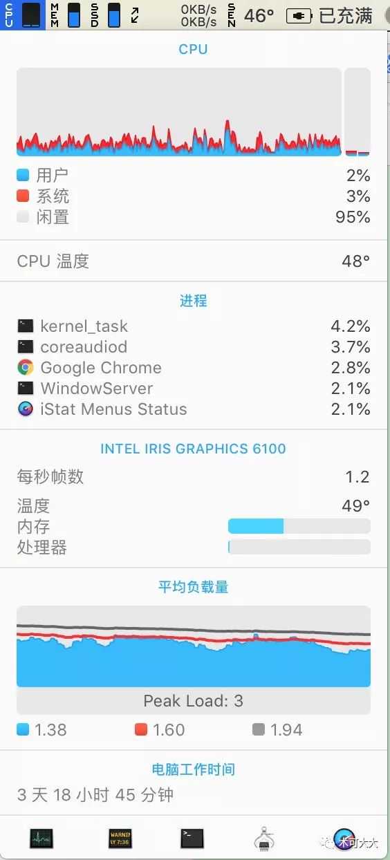能够在系统菜单栏实时监控CPU、GPU、内存、硬盘、网络、温度、电池以及系统时间等,并且可以替代系统日历。默认是收费的,可以下载到破解版。