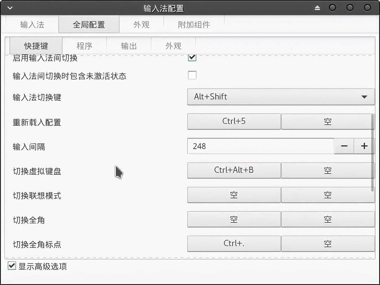 在这里设置输入法的快捷设置,比如一行显示多少,往下翻页的快捷键,输入法之间切换以及大小写与英语之间切换