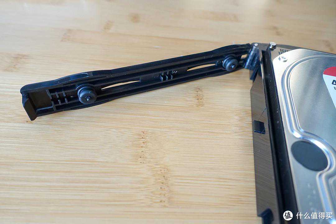 快拆硬盘支架为塑料材质,可以实现免工具固定机械硬盘,直接用手一掰一扣就能固定上。