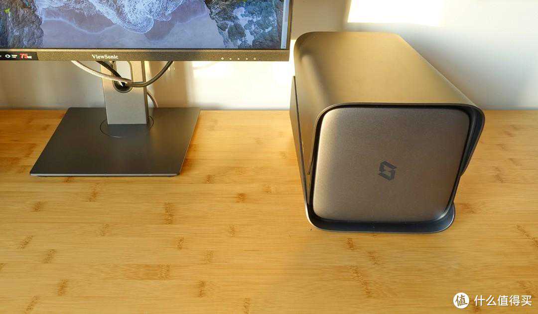 极空间新Z4的整体体积不算大,比我用过的迎广MS04和乔思伯N1机箱都要小一号,放在书桌上也不违和,电视柜上也能轻松放得下。