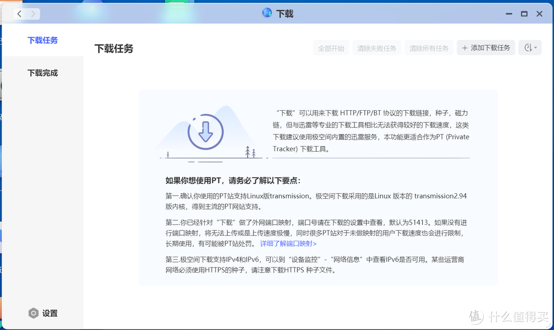 NAS由于7*24H不关机的工作方式,天然适合作为下载平台。我自己几年前入手第一台白群晖的时候,就是为了给PT种子下载和挂机用的。
