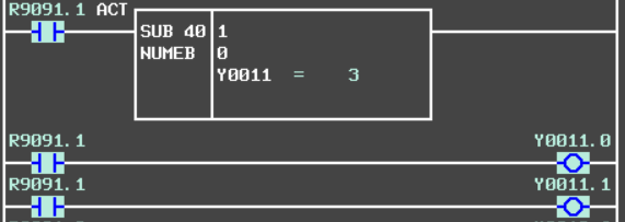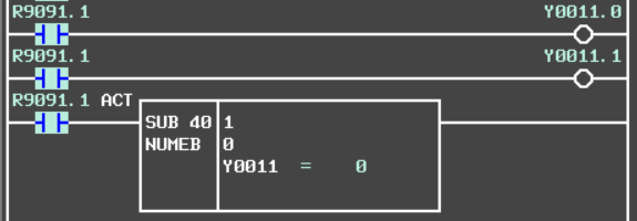 5、线圈地址被赋值:如果线圈地址已经被赋值了,那么类似于双线圈问题,那么线圈是否输出则取决于最后执行线圈的状态,如下图所示,由于Y11赋值与线圈的位置不同,导致输出结果不同。